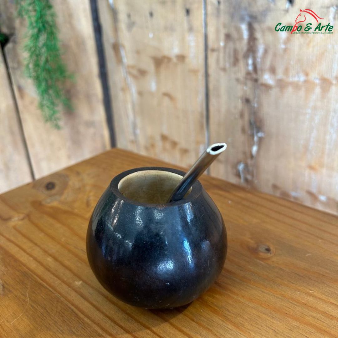 Artesanato de Qualidade: Revestimento em couro costurado à mão, com trançados tiento equino, tornando cada cuia única.